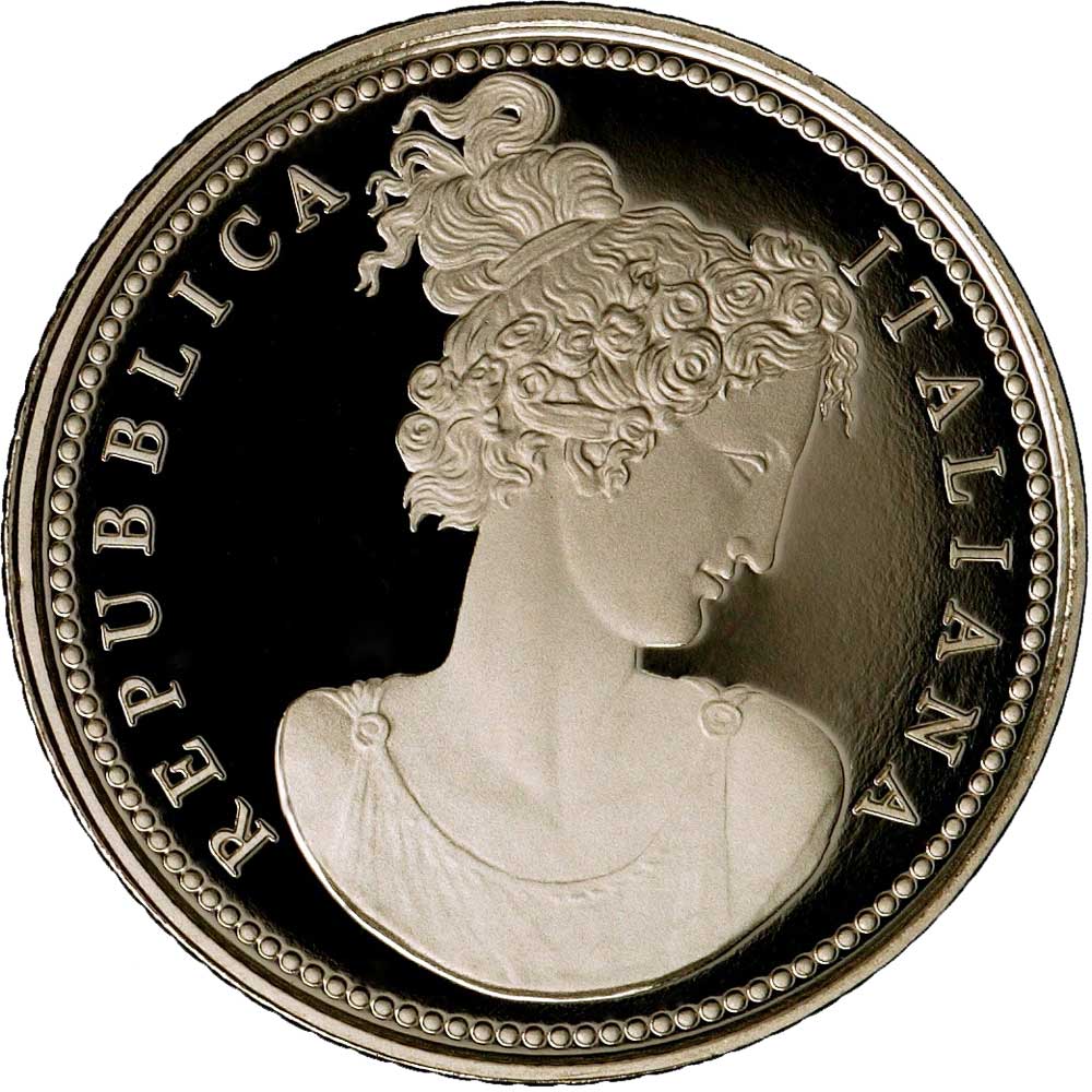The obverse design bears the inscription “Republica Italiana” around a female bust bearing a floral wreath.
