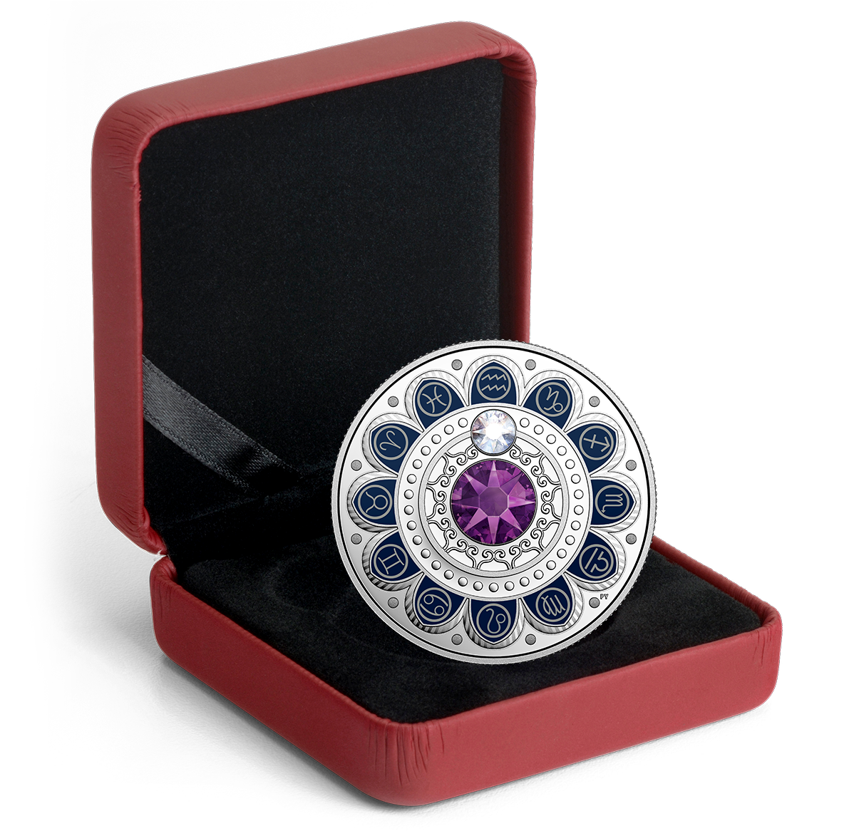 Canada 2017 Silver Zodiac Coin with Swarovski® crystals – Aquarius Box